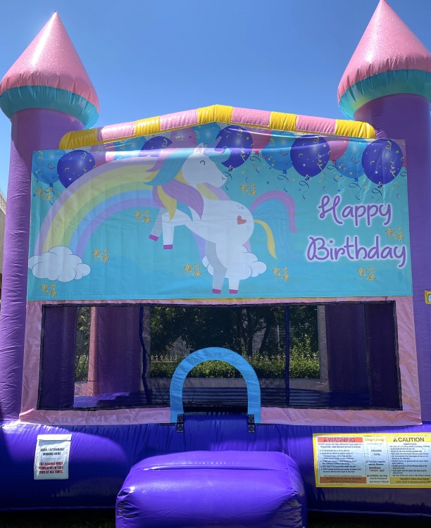 Made of lead free, fire retardant vinyl, this jumper is 14’4″ long x 13’4″ wide x 12’8″ high and perfect for kids 36″-70″. It also includes an access ramp and child safe mesh. It’s sure to delight your guests and provide hours of fun! Rent yours today for just $139! Please add a generator if your event is in a park.